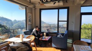 Irgendwann erspähte ich ein nett aussehendes Café direkt am Abhang mit schöner Aussicht. Ich gönnte mir einen Cappuccino und ein paar Chicken Momos zum Frühstück.