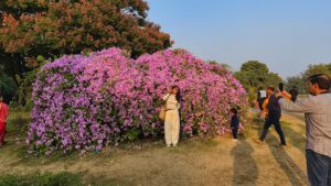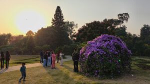 Wie schon in einem YouTube Video gesehen ist er nichts Außergewöhnliches, doch um den Tag ausklingen zu lassen allemal schön genug. Leider habe ich zu dieser Jahreszeit keine einzige Rosenblüte gesehen. Es gab lediglich ein paar lila blühende Bäume, die für viele Inder ein begehrter Fotohintergrund waren.