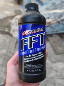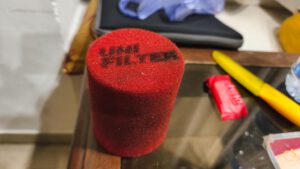 Zurück im Hotel stellte ich fest, dass mein gestern gereinigter Luftfilter über Nacht komplett getrocknet war. Also begann ich damit ihn neu einzuölen. Ein Tipp aus dem Internet empfahl den Filter samt ein wenig Öl in einer Ziplock Beutel zu geben und anschließend das Öl gut einzumassieren. Guter Tipp, so hielt sich die Sauerei in Grenzen. Trotzdem trug ich Einweghandschuhe, da ich den Filter anschließend ja noch ein wenig ausdrücken, abtupfen und schließlich auch wieder einbauen musste.