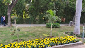 Nun spazierte ich am See entlang und genoss die schön gestaltete Promenade mit den vielen Palmen, den zu Figuren zurechtgeschnittenen Büschen sowie den Blumen.