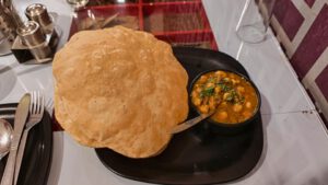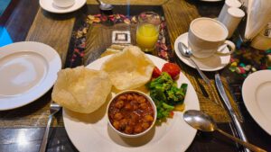 Zum Frühstück hatte ich wieder ein sehr leckeres Chole Bhature.