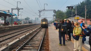 Leider fuhren wir die gesamte Strecke durch dichten Nebel, so dass von der Landschaft nichts zu sehen war. Doch es war trotzdem ein nettes Erlebnis mal in einem indischen Zug zu fahren. Allerdings haben wir keine Passagiere mit Ziegen oder Hüunern gesehen. Da war Stefan ein wenig enttäuscht.