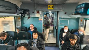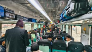Während der 2½ stündigen Zugfahrt machte ich zuerst zusammen mit Stefan einen Spaziergang durch den kompletten Zug. Einige der Inder haben uns ein wenig seltsam angeschaut mit 2en haben wir uns ein wenig unterhalten. Beides Medizinstudenten. Der eine hatte sogar in der Ukraine studiert, weil die Universität dort billiger war als in Indien.