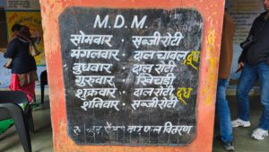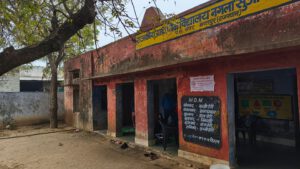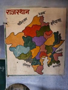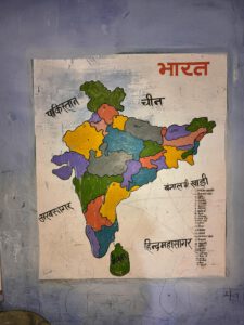 Kurz darauf besuchten wir eine ländliche Schule. Hier hat man erkannt, dass Indien in vielen Bereichen doch noch ein Entwicklungsland ist. Es gibt 2 Lehrerinnen für 40 Schüler, die auf 8 Schuljahre aufgeteilt sind. Obwohl Hindi und Englisch auf dem Lehrplan stehen, konnte eine der beiden Lehrerinnen kein Englisch. Und von 40 Kindern waren an dem Tag nur 4 Kinder in der Schule. Ein 5-jähriger, ein 8-jähriger, ein 11- und ein12-jähriger. Da es in der Schule keinen Strom gibt, saßen die Kinder draußen. Drinnen war es wegen dem bewölkten Himmel zu dunkel. Aber auch drinnen gab es keine Schulbänke. Der Unterricht findet immer auf dem Fußboden statt. Ein nicht ganz schöner Anblick.