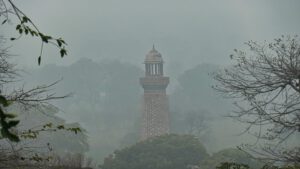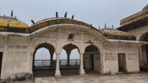 Bei gutem Wetter kann man das 2 Kilometer entfernte Raj Mahal sehen, doch bei dem dirchten Nebel heute leider nicht.