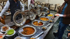 Um 19:30 Uhr gab es Abendessen. Vermutlich das letzte Buffet-Essen, das ich hier in Indien haben würde. Ab dem nächsten Tag hieß es wieder billige Restaurants und Streetfood.