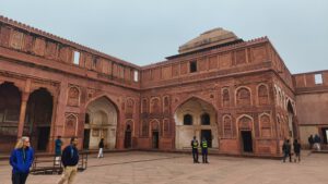 Eigentlich stand in Agra als erstes der Besuch des Tai Mahal auf dem Programm. Doch es war so neblig, dass wir zuerst das Rote Fort besuchten, in der Hoffnung dass der Nebel sich bis zum Nachmittag noch etwas lichten würde.