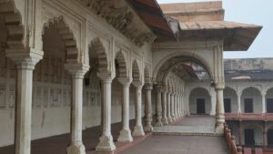 Das Fort wurde von mehreren Mogulkaisern (3.-6.) über 120 Jahre immer weiter ausgebaut. Die älteren Teile bestehen aus rotem Sandstein, die neueren aus Marmor.