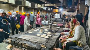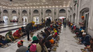 Dann besichtigten wir die Tempelküche Langar, wo ein paar Leute auf dem Boden saßen und verköstigt wurden.
