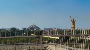 Dann fuhren wir zu der letzten Sehenswürdigkeit dieser Rundreise, dem Akshardham-Tempel. Da das Fotografieren dort auch wieder strickt verboten war und wir die Handys im Bus lassen mussten, hatte ich leider keine Bilder. Doch es gibt ein paar schöne im Internet.