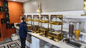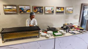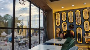 Auch wenn Chaat eher Snacks sind, die an Streefoodständen verkauft werden, gab es im ersten Stock einen schön eingerichteten Raum mit großer Glasfassade. Schöner als so manches Restaurant.