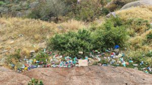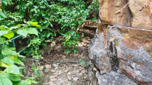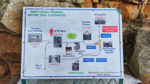 Es gab auch einen kleinen Rundweg, der etwas hochtrabend, als Nature Trail bezeichnet wurde. Es war halt ein Weg entlang des Flussufers, der je weiter ich ihn ging, immer mehr zugewachsen war und die ein oder andere Treppenstufe war auch weggebrochen. Da die Inder ausschließlich für Selfies mit dem Wasserfall sowie einer Bootstour hier her kommen, hatte ich den gesamten Trail für mich alleine. Außer viel Grünzeug, ein paar Blüten und einem Schmetterling habe ich von der „Nature“ aber nicht viel gesehen. Trockenzeit eben…