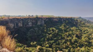 Nun fuhr ich zu einem weiteren Wasserfall, der nur 10 Minuten entfernt war. Doch als ich dort ankam, war weit und breit nichts von einem Wasserfall zu sehen. Lediglich eine riesige Abbruchkante. Ich vermute, dass es aktuell in der Trockenzeit einfach nicht genug Wasser im Fluss gibt.