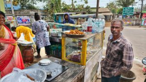 Etwas außerhalb hielt ich an um zu frühstücken. Es gab Puri Sabji.