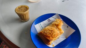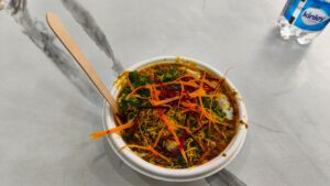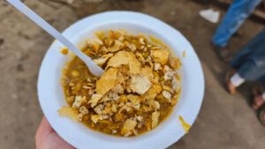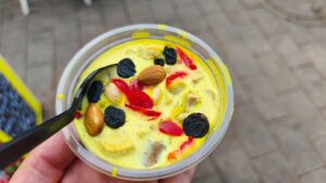 Also ging ich zurück ins Zentrum und aß mal wieder eine Kleinigkeit an einem Streetfood-Stand. Eine Samosa und ein Samosa-Chaat. Also eine Samosa mit Kichererbsensoße und ein paar weiteren Soßen. In einem anderen Laden bekam ich noch einen leckeren Nachtisch. Vanillepudding mit Nüssen und Früchten.