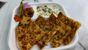 Ich bestellte ein Samosa Ragda. Mal was neues, was ich bisher noch nicht gegessen hatte. Sehr lecker. Laut Google ist es ein Erbseneintopf. Dazu bestellte ich noch ein Paneer Paratha.