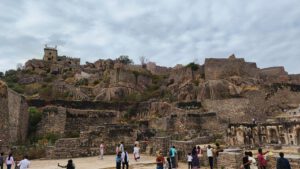 Ich packte schnell aus, zog mich um und machte mich dann auf den Weg zum Golkonda Fort, zu dem ich 40 Minuten fahren musste.