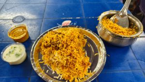 Anschließend aß ich in einem Restaurant vor dem Fort ein Biryani. Das berühmteste Gericht in Hyderabad. Leider war es mir deutlich zu scharf, obwohl ich extra bei der Bestellung meinte, sie sollen es nicht scharf machen. Aber so weit ich weiß, ist Hyderabad die Stadt in Indien mit dem schärfsten Essen.
