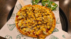Zum Abendessen wollte ich endlich nochmal ein schönes indisches Gericht, doch ich fand nur Fast Food und Biryani Restaurants. Also aß ich eine Chicken Roll mit Fritten, die aber ziemlich scharf waren, und da ich davon nicht satt wurde, noch eine Pizza. Die war erstaunlicherweise ganz lecker.