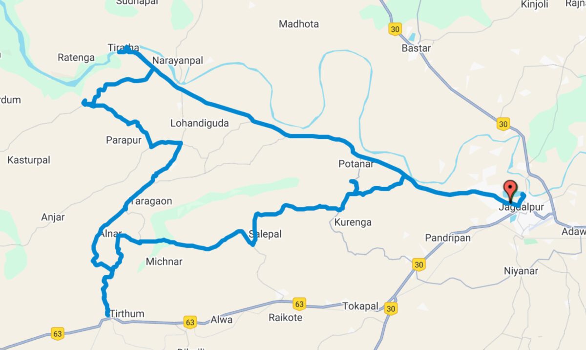 Nun entschloss ich mich anstatt den gleichen Weg zurück zu nehmen, lieber noch über die kleinen Sträßchen durch ein paar abgelegene Dörfer zu fahren. Das konnte allerdings bedeuten, dass ich keine Zeit mehr hatte, den See in Jagdalpur zu besuchen. Da ich hier keinen Internetempfang hatte, konnte mir Google Maps keine Zeit für die Strecke berechnen. Ich fuhr also einfach auf gut Glück los.