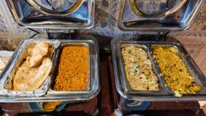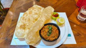 Um 9:00 Uhr stand ich auf, duschte und ging zum Frühstück. Als hätten sie Gedanken lesen können, gab es heute Chole Bhature. Und es war richtig lecker.