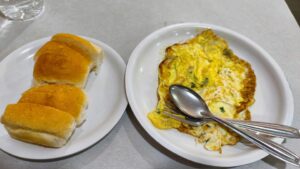Ich hatte eine verhältnismäßig gute Nacht. Im Gegensatz zu den letzten Tagen machte ich mir nicht so viele Sorgen, die mich vom Schlafen anhielten. Ich stand um 9:00 Uhr auf, duschte schnell und ging ins benachbarte Restaurant um etwas zu frühstücken. Ich bestellte ein Omelette mit einem Milchkaffee und da ich davon nicht richtig satt wurde, bestellte ich mir gleich noch ein zweites hinterher. Alles zusammen für 170 Rupien.