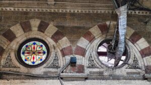 Ich versuchte es bei einer weiteren Bank, die laut meiner App keine Gebühren verlangen sollte, doch diese Bank war in ein großes Gerüst gehüllt. Sie wurde wahrscheinlich renoviert.