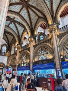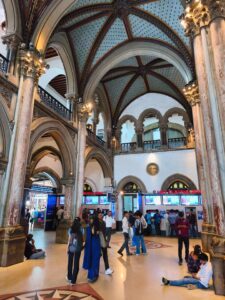 Die Halle mit den Gleisen war architektonisch nichts besonderes, doch als ich in die Vorhalle kam änderte sich das Bild. Zuerst deuteten nur ein paar verzierte Säulen und bunte Fenster auf die kolonialen Bauherren hin, doch die Halle mit den Ticketschaltern ähnelte mehr einer Kirche als einem Bahnhof. Wirklich schön anzusehen. Und von außen war das Gebäude noch beeindruckender. Gegenüber lag noch ein weiteres imposantes Gebäude, das wie eine Kirche aussah, aber lediglich ein Gebäude der Kommunalverwaltung war.