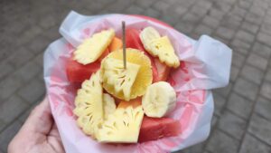 Als ich am Nachmittag Hunger bekam, späzierte ich ein wenig durch die Gassen der Fort Gegend und aß verschiedene Kleinigkeiten wie Samosas, Frühlingsrollen und einen Obstteller.