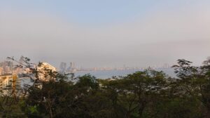 Anschließend ging ich in den gegenüberliegenden Kamala Nehru Park, der auch ganz schön angelegt war, jedoch ohne blühende Blumen. Dafür hatte man einen guten Ausblick über den Marine Drive, wenn auch leider mit einem blöden Hochhaus, das im Weg stand.