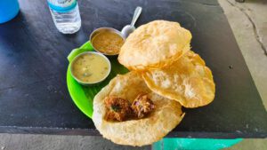 Dann fiel mir auf, dass ich im Supermarkt vergessen hatte Wasser zu kaufen. Also hielt ich schnell an einem Straßenstand und kaufte 2 Liter Wasser. Da ich schon mal dort war aß ich auch noch ein Kachori für den kleinen Hunger.