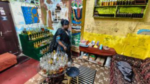 In dem Laden für die Öle bekam ich zuerst eine Demonstration wie Räucherstäbchen hergestellt werden und anschließend zeigte mir die Dame verschiedene Öle. Doch außer dem Pfefferminzöl, dass mir meine Nase ziemlich gut frei brannte, habe ich nichts gerochen. Auch wenn es teuer war, nahm ich mir ein 10ml Fläschchen des Pfefferminzöls für 1100 Rupien mit.