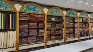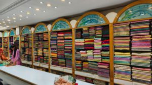 Auf dem Weg zurück zum Hotel schaute ich noch in einen Touristenladen rein, der Seide verkauft. Dafür ist Mysore wohl sehr berühmt.