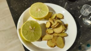 Mit dem neuen Messer macht euch mir sofort einen frischen Ingwer-Zitronen-Tee.