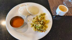 Das Buffet war nichts besonderes. Ich nahm etwas Reis und Idli Sambar. Die Idli waren allerdings deutlich besser als die paar mal als wir sie auf der Rundreise hatten.