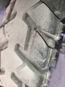 Der Parkplatzwächter hat mich auch darauf hingewiesen, dass ich mir eine Schraube in den Reifen gefahren hatte. Gut, dass ich einen Schlauch im Reifen habe und die Schraube nicht zu tief eingedrungen ist. So blieb es bei einem kleinen Loch im Reifen, ohne, dass ich dadurch Luft verlor.