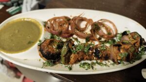 Zum Abendessen hatte ich Paneer Tikka, Dal Makhani, Cheese Naan und Lassi.