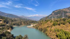 Nun ging es auf die kurvige Straße hinauf nach Bandipur von der man einen perfekten Ausblick auf das Annapurna Massiv hat. Es gab auch eine Aussichtsplattform auf der ich mein Motorrad abstellen und ein paar schöne Bilder machen konnte.