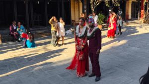 Nun war ich bereit den Ort zu erkunden. Die Dame von meinem Hotel erklärte mir, dass hier gerade eine Hochzeit im Gange wäre. Das war auch der Grund für die Musikanten und die tanzenden Menschen auf der Straße. Ich konnte sogar ein Bild vom Brautpaar erhaschen. Die vielen gut gekleideten Menschen sind wahrscheinlich alles Hochzeitsgäste.
