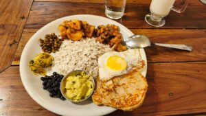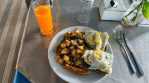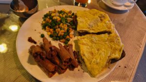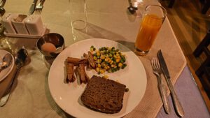 Um 6:25 Uhr saß ich am Frühstückstisch und und hatte ein sehr reichhaltiges Frühstück. Ich wusste ja nicht wie anstrengend die Wanderung heute werden würde.