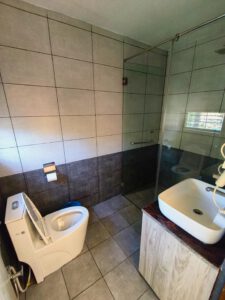 Leider dauerte es ein wenig bis ich mich duschen konnte. Das heiße Wasser war gerade aus und da ich nicht warten wollte bis der Boiler wieder warm war fragte ich die Dame, ob sie mir in der Küche etwas Wasser warm machen könnte. Nach ein paar Minuten bekam ich einen halben Einer heißes Wasser. Mit kaltem Wasser aus der Dusche gemischt war es gerade gut um mich damit zu duschen.