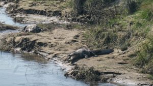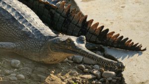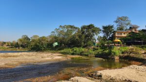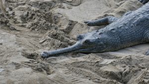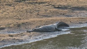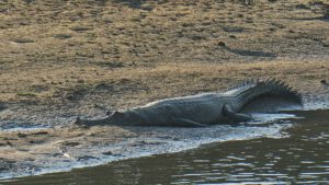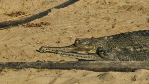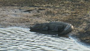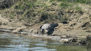 Von hier ging ich wieder am Flussufer zurück zu meinem Hotel. Der Gavial lag immer noch in der Sonne.