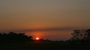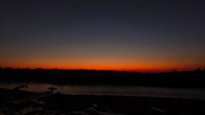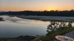 Wir gingen zusammen nochmal zum Fluss. Suba hatte dort vor dem Essen sogar einen Elefanten gesehen. Der war allerdings mittlerweile weg. Wir schauten uns gemeinsam den Sonnenuntergang an und dann merkte sie, dass der Akku ihres Handys nahezu leer war. Sie war etwas besorgt, ob sie ihr Hotel ohne Google Maps finden würde, da es etwas außerhalb lag. Rund 35 Minuten Fußweg. Ich bot ihr an sie zu fahren, was sie dankend annahm.