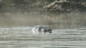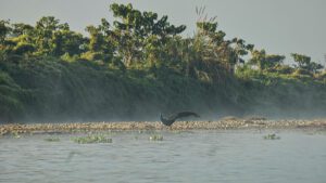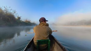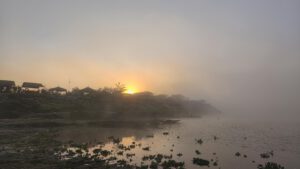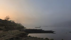 Pünktlich um 7:00 Uhr traf ich meinen Guide vor dem Frühstücksrestaurant und wir gingen zusammen am Ufer entlang zur Bootsanlegestelle. Über dem Fluss war es noch sehr neblig und ich war etwas skeptisch ob wir bei der Kanutour überhaupt etwas sehen würden. Doch in dem Moment war der Anblick etwas besonderes.