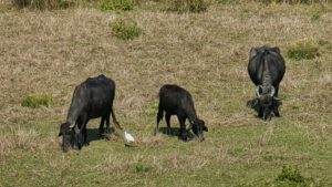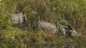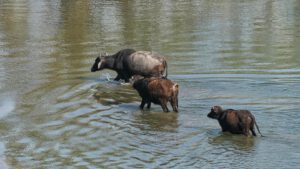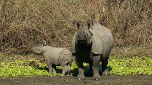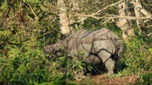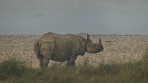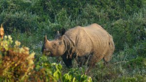 Dann legten wir an und die Walking Safari begann. Wir waren insgesamt 2½ Stunden unterwegs durch eine wunderschöne Landschaft. Während der Wanderung, die zum Glück vom Tempo her eher ein Spaziergang war konnten wir die Stimmen der Wildnis genießen. Und das beste war, wir sahen 3 weitere ausgewachsene Nashörner wovon eines ein Weibchen war, das sogar ein Baby dabei hatte. Ich konnte mein Glück kaum fassen und selbst der Guide war überrascht, dass wir in so kurzer Zeit so viele Nashörner gesehen hatten. Ich empfand es als schönen Ausgleich für das Pech, das ich im Bardia Nationalpark hatte.