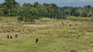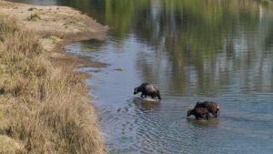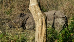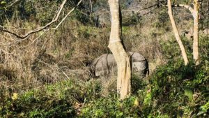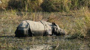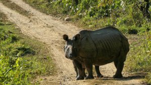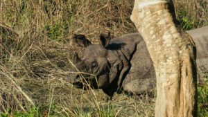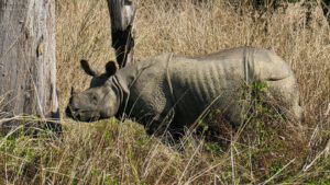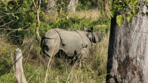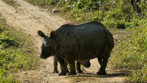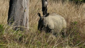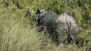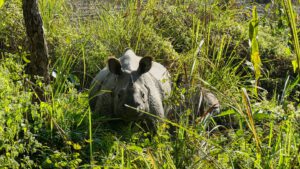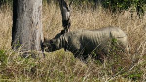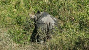 Mit 10 Gästen und dem Guide fuhren wir los. Die Safari selbst fand ich nicht so schön wie im Bardia Nationalpark, da wir die ganze Zeit im Jeep blieben und es keine kurzen Spaziergänge zwischendurch gab. Dafür habe wir 2 weitere Nashörner gesehen, eines davon wieder mit Baby. Außerdem sahen wir ein paar Affen und etliche Vögel.