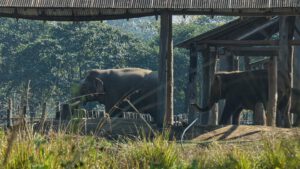 Doch wir hatten erneut großes Glück und trafen auf Ronaldo. Das ist ein wilder Elefant, der ab und zu in der Station vorbei schaut um mit den dortigen Elefantendamen zu flirten.