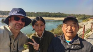 Am Crocodile Viewpoint lagen wieder 3 Gaviale und 2 Sumpfkrokodile. Dort traf ich einen netten älteren Herrn, der sich mir als Sher (wie auch immer man das schreibt) vorstellte. Er war mit seiner 12-jährigen Enkelin Malbi unterwegs. Es war schön mal nicht in Eile zu sein. So machte es mir auch gar nichts aus, dass er mir seine halbe Lebensgeschichte sowie seine Familienverhältnisse erzählte. Dabei erfuhr ich auch noch etwas über die Geschichte Nepals und dass Nepal nie kolonialisiert wurde, weil die Briten es irgendwann aufgegeben haben und lieber mit Nepal militärisch zusammengearbeitet haben. Das hält noch bis heute an und es gehen jährlich ein paar Hundert junge Männer nach England in die Armee.