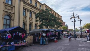 Nach wenigen Minuten war alles geklärt und ich bummelte noch ein wenig durch die Gegend rund um die Stadthalle wo es auch einen kleinen Straßenmarkt gab. Dann schlenderte ich durch eine angenehm klimatisierte Shopping Mall in der ich von Verlaufsschildern der Waffen etwas schockiert war. Später fand ich heraus, dass es sich „nur“ m Schreckschusswaffen handelte, was ich aber immer noch etwas bedenklich fand.