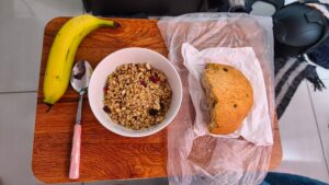 Der Wecker klingelte um 8:30 Uhr und riss mich aus dem Tiefschlaf. Ich machte mir mein restliches Müsli zum Frühstück und aß noch eine Banane dazu.